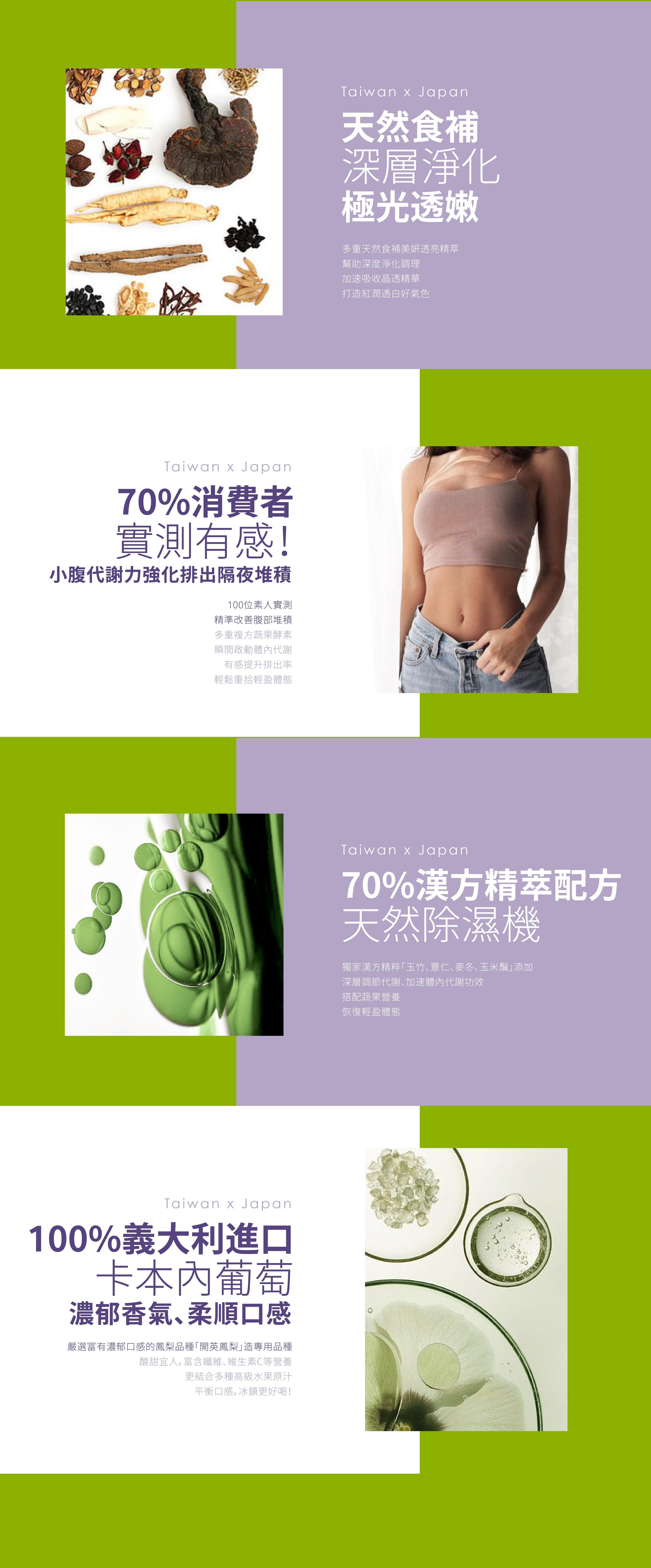 促進代謝、排便順暢、幫助消化、活化循環、調節生理機能、煥白透亮、亮妍光感