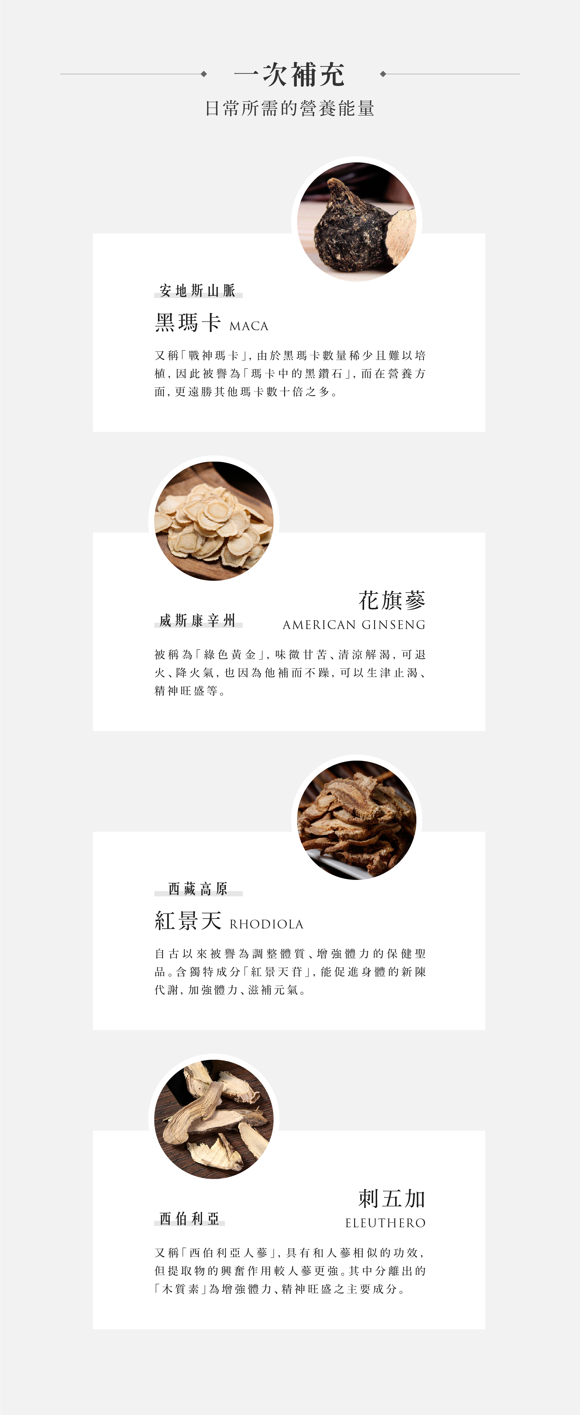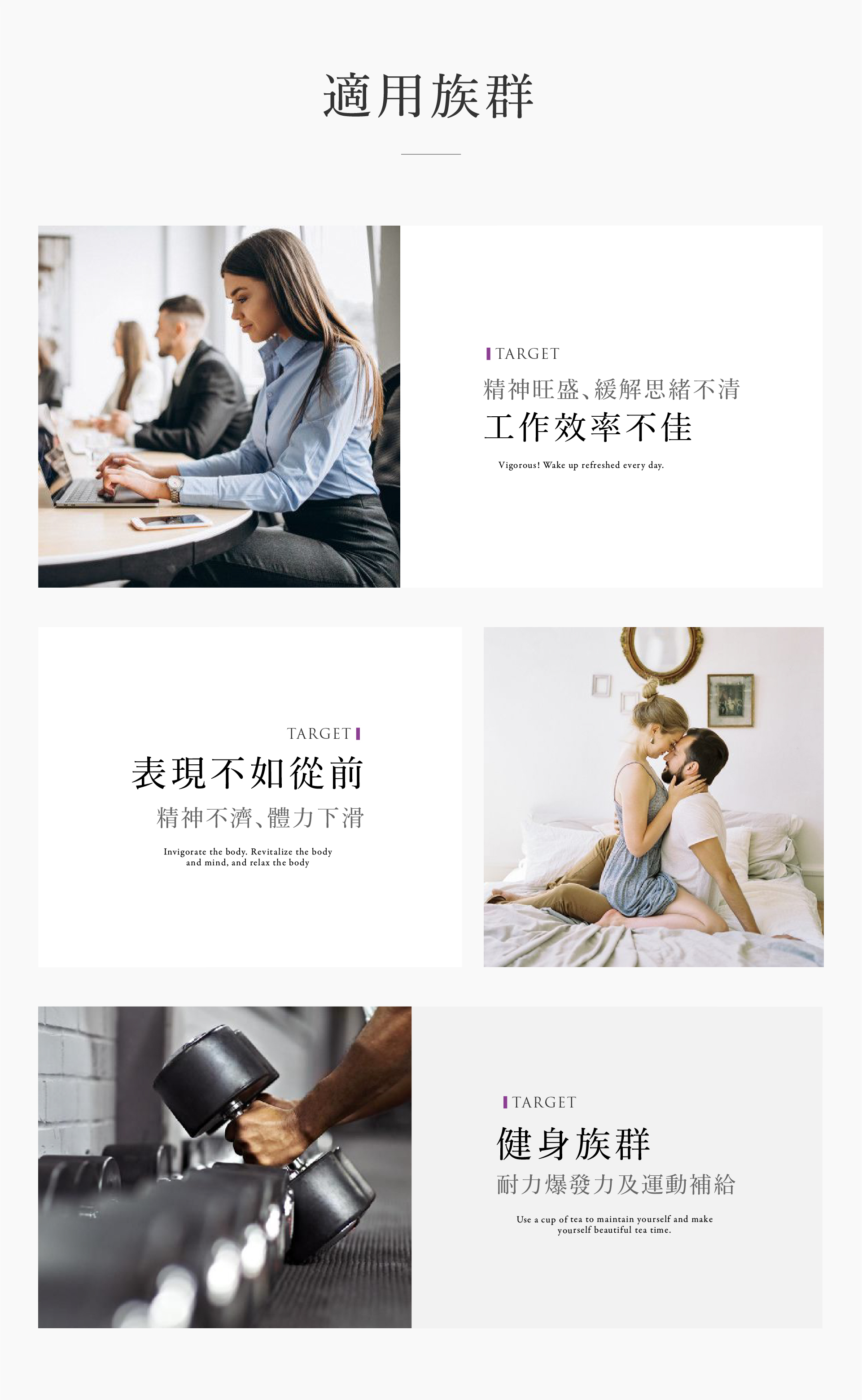 精神旺盛、滋補強身、增強體力、健康維持、調節生理機能